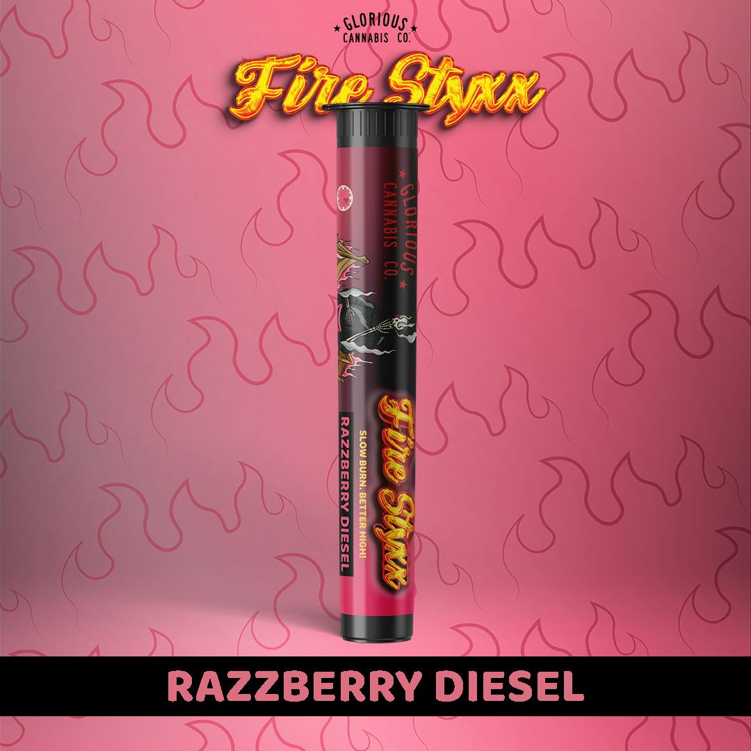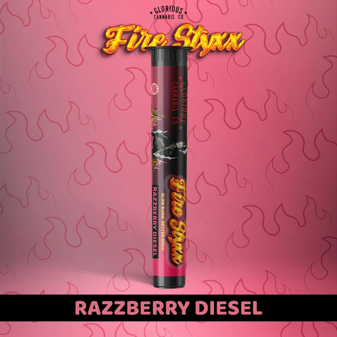Glorious Cannabis Fire Styxx Pre-rolls redefine the smoking experience with their meticulously crafted design, ensuring a slow and even burn for an extended and enjoyable session. These pre-rolls not only provide a leisurely smoking pace but also promise a better high, making them a top choice for those who value a smooth and elevated cannabis consumption. Tart yet refreshing, with strong flavors of red ripe raspberry, and undertones of earthy pine pack a punch in Razzberry Diesel.