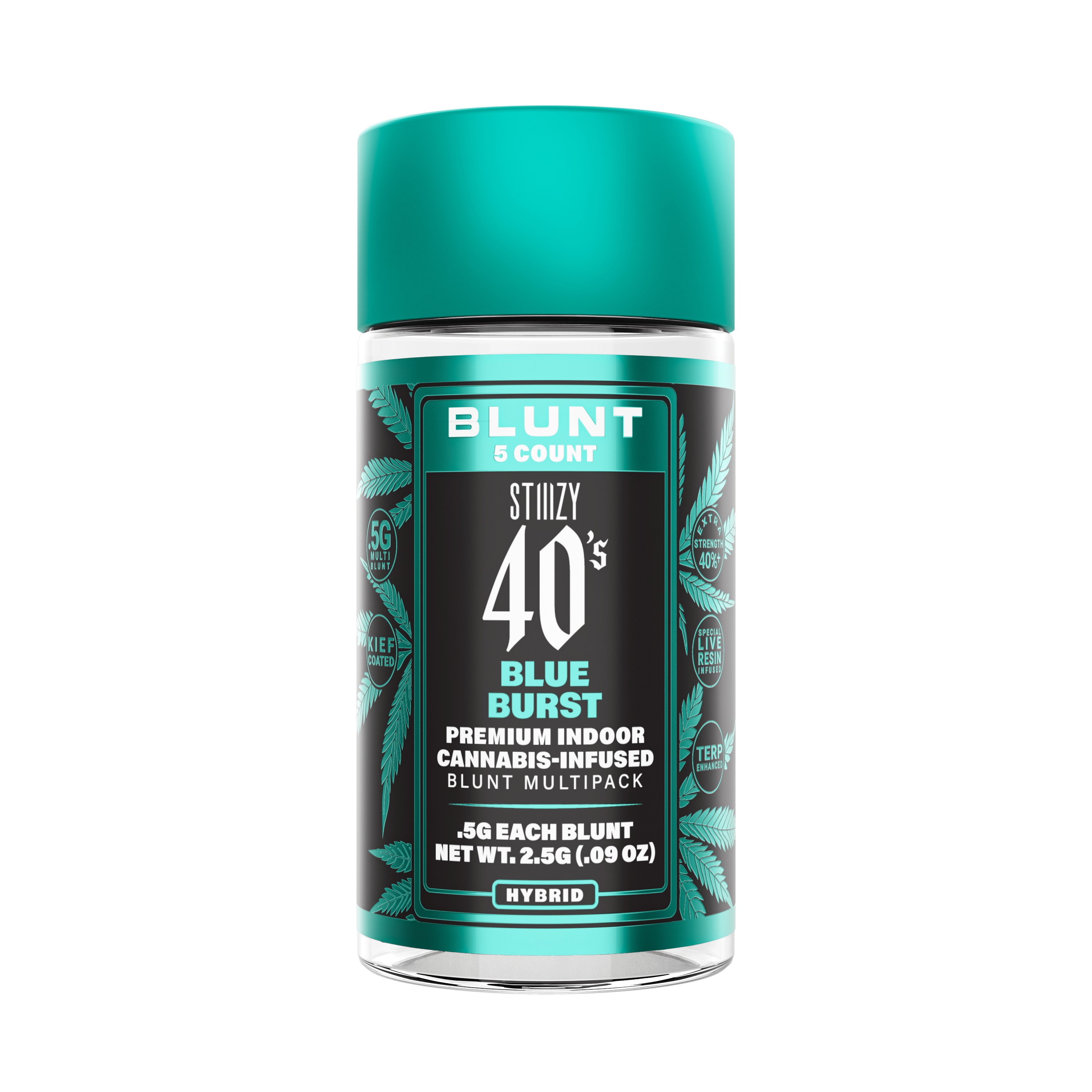STIIIZY 40’s Mini Blunts Multipack is filled with premium grown STIIIZY cannabis and packed in individual glass vials to maintain freshness and potency. Each 40’s Mini Blunt is rolled with 100% tobacco free, kief dusted hemp wraps which packs a flavorful and potent punch with every exhale, and the tightly secured custom glass tips have been perfected to provide an amazing and consistent burn every time. The STIIIZY 40’s Mini Blunts Multipack is reinventing your high experience by being one of the first to introduce 40% THC and total cannabinoids potency with special live resin infusion.