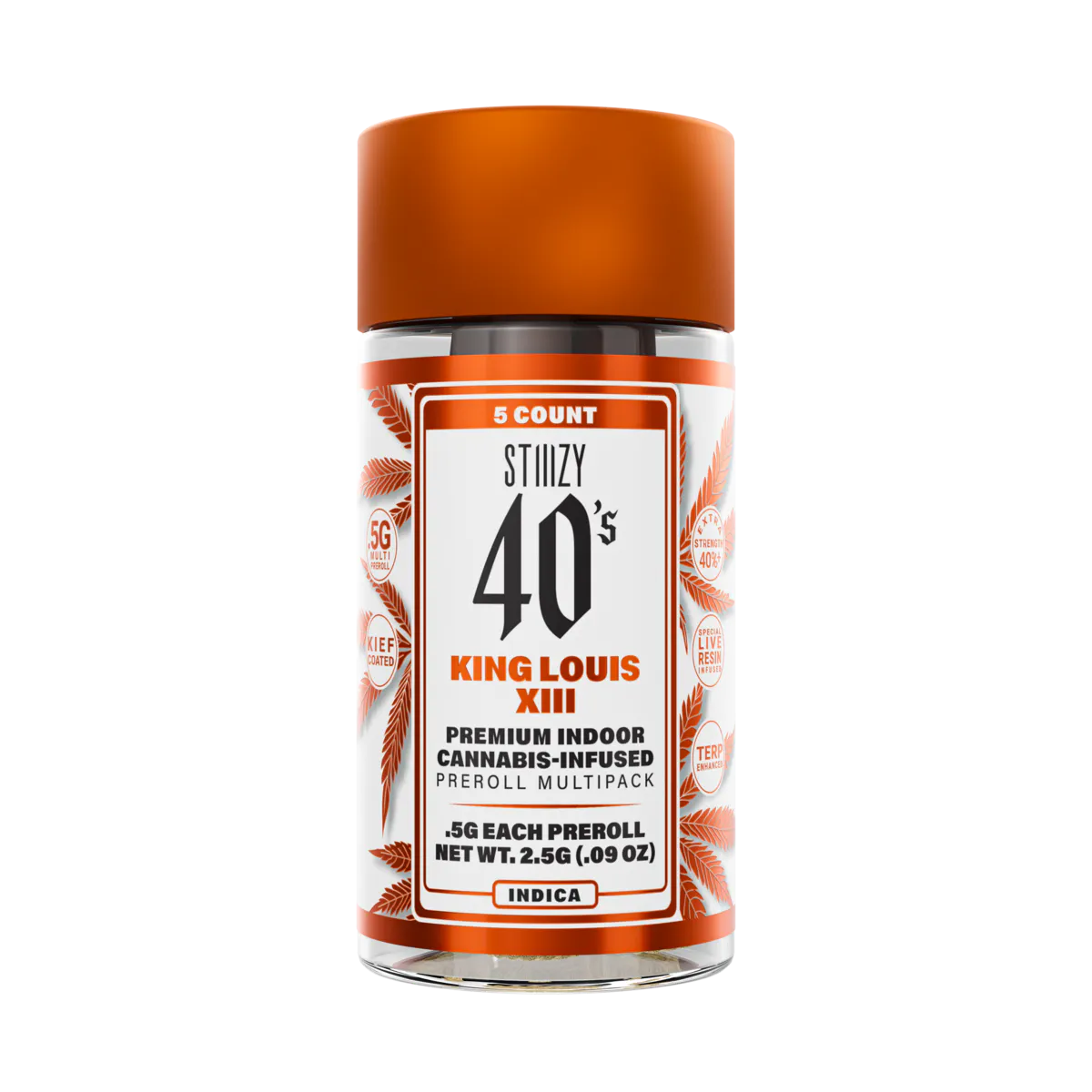 Elevate your pre-roll game. Stiiizy 40s pre-rolls are setting the standard with high potency, cannabis infused joints coated evenly with kief. Using our proprietary live resin infusion methods, we’ve designed every pre-roll to offer 40%+ THC potency with a unique flavor profile. With a smooth inhale and tasteful exhale, each and every Stiiizy 40 is packed with indoor grown flower, specifically made to ensure a potent and long-lasting high. Spark up the 40s.